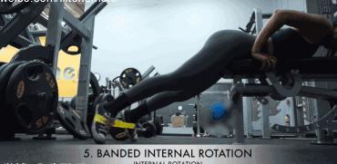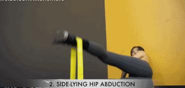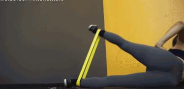 利用弹力带完成侧抬腿动作,弹力带能提供持续的张力。重量保持恒定,每组每一边做15至12次,或者12至10次。动作过程中保持身体稳定,不要晃动。
